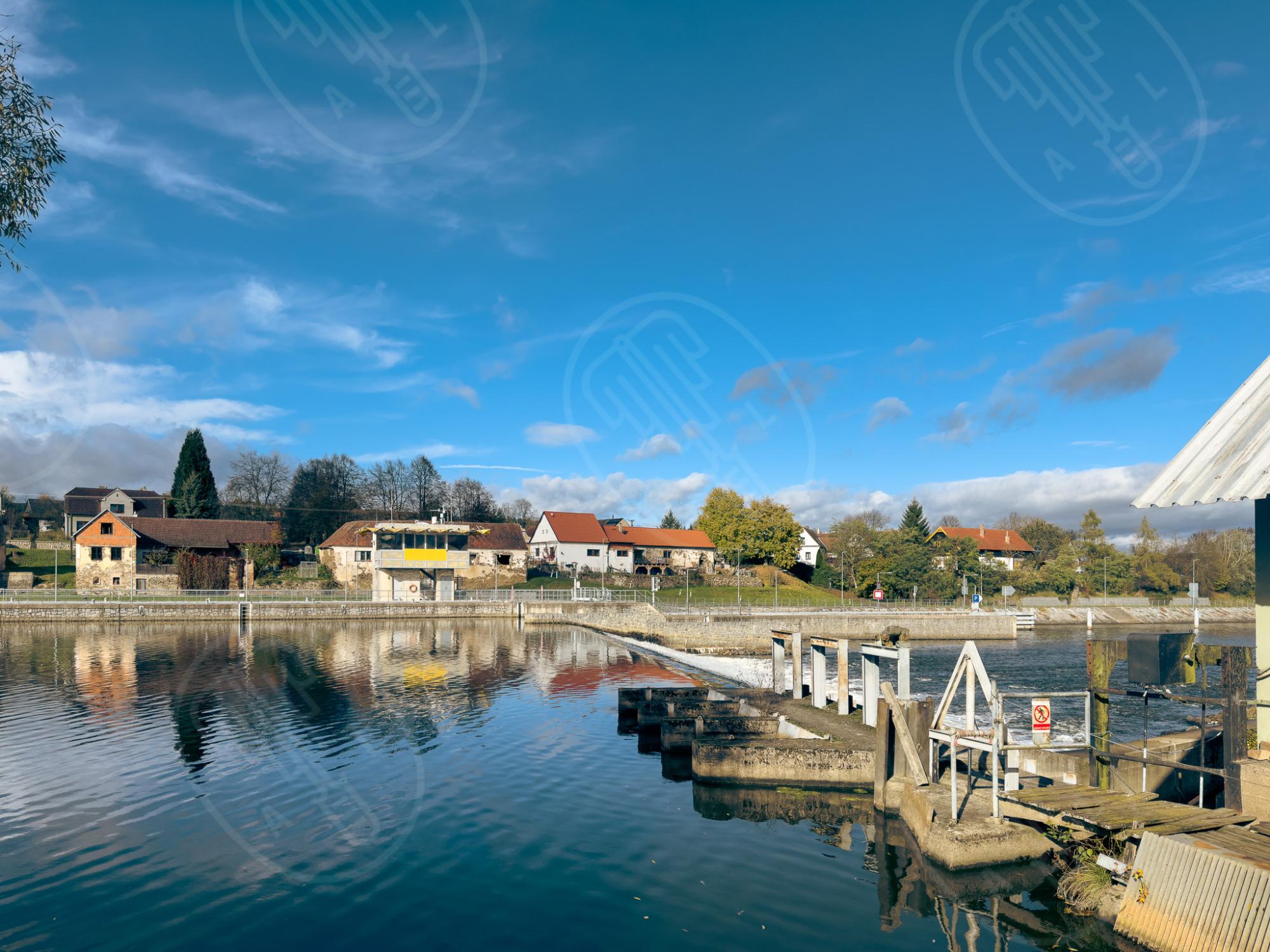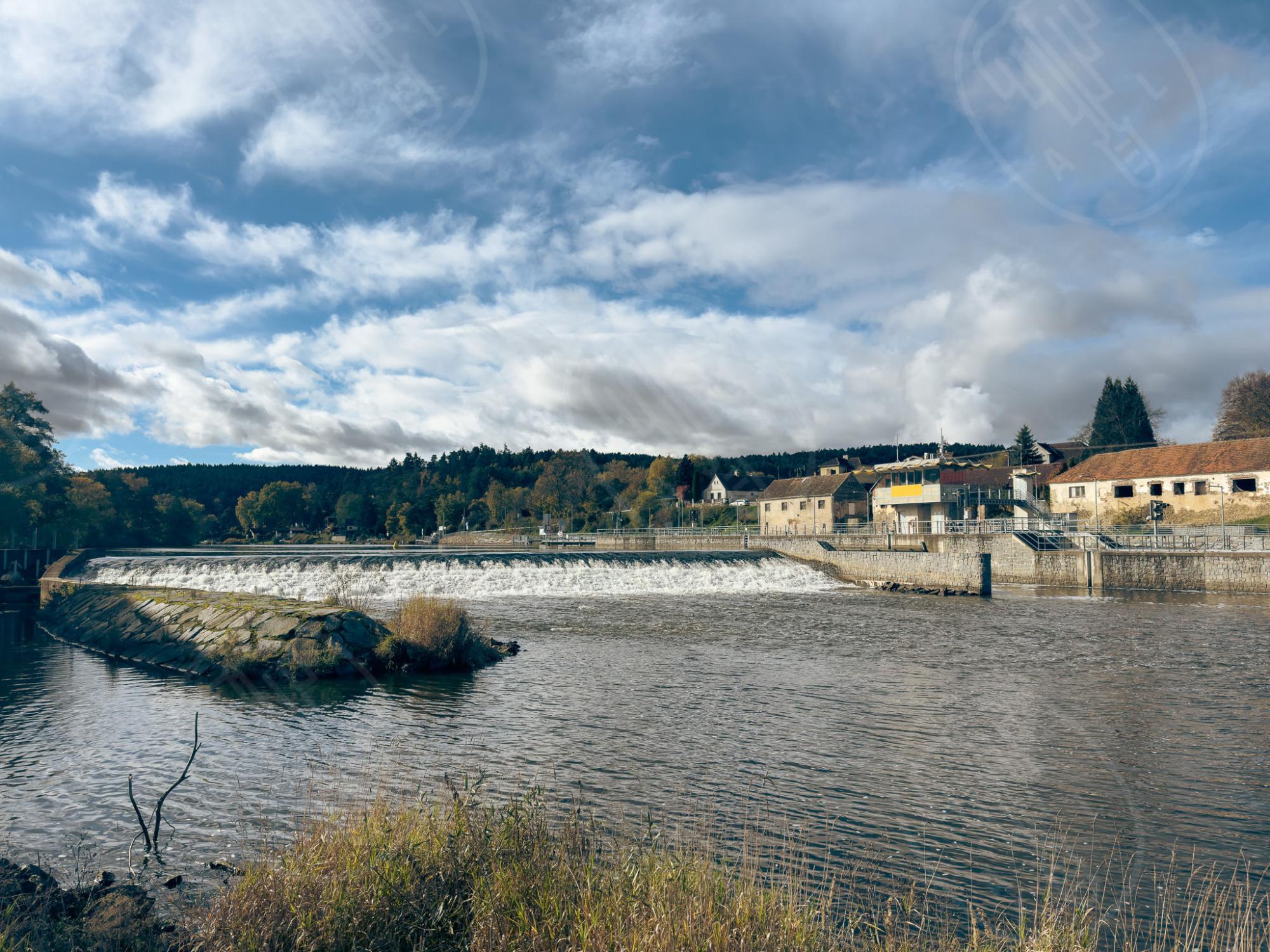 Levá část jezu byla po zániku Fiedlerova mlýnu přestavěna 1958 pomocí betonu, ve střední části se nacházela 6,3 metru široká vorová propust, na jejíž místě byla 2015–2017 vestavěna plavební komora Hněvkovice – jez. V rámci přestavby bylo vybudováno mezi komorou a historickým jezem nové jezové pole a mezi komorou a levým břehem byl postaven rybí přechod. Na levém břehu byly vybudovány dvě přístupová schodiště pro vodáky.