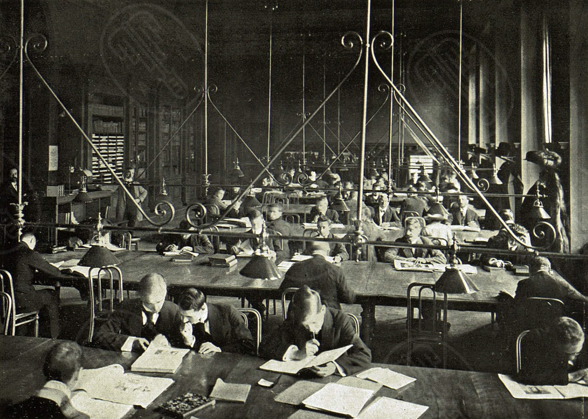 Její vznik je úzce spjat se založením samotného Uměleckoprůmyslového musea (UPM) – stejně jako muzejní sbírky sídlila původně v protilehlém Rudolfinu. S výstavbou nové muzejní budovy podle návrhu architekta Josefa Schulze v letech 1897–1899 získala knihovna důstojné a reprezentativní prostory. Mezi nimi vyniká jedna z nejkrásnějších veřejných čítáren v Praze, charakteristická vysokými stropy, kvalitním osvětlením a esteticky i funkčně propracovaným mobiliářem. Tento prostor v době svého vzniku ideálně naplnil dobové ideály užitého umění.