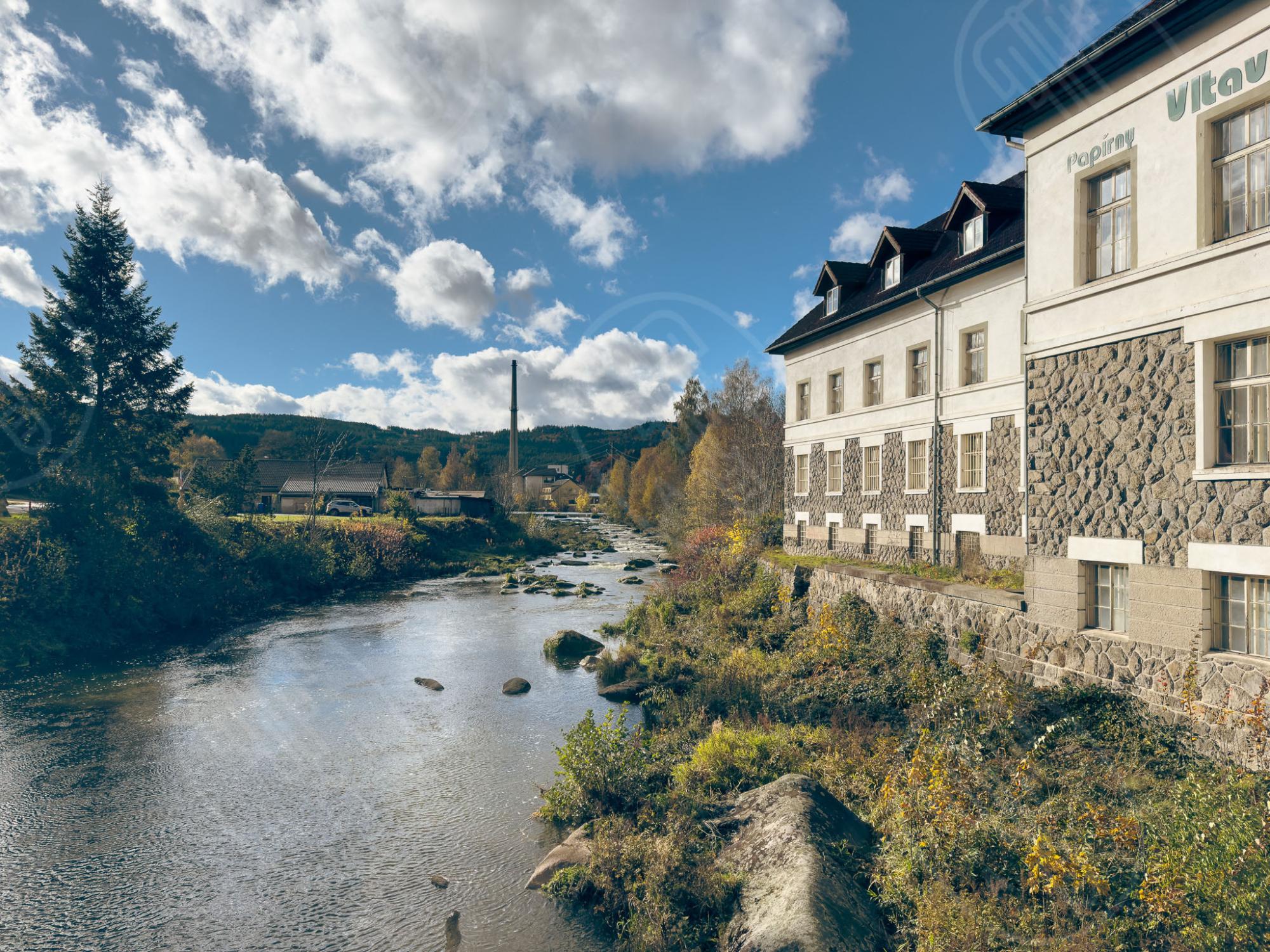 Výroba buničiny byla na Vltavském mlýnu přes drsné přírodní podmínky zahájená již na podzim 1886. S nákupem dalších technologií rostly objemy produkce, instalace prvního papírenského stroje 1895 umožnila přechod na výrobu finálních produktů. Na přelomu století zde pracovalo na 1000 osob, postaveny byly zaměstnanecké domy, telegrafní úřad a škola. V roce 1901 byl zbudován umělý kanál vedle Vltavy, umožňující lepší hospodaření s vodou v rámci průmyslového areálu. Od 1903 byl v nedalekém Svatém Prokopu zprovozněn další výrobní areál s vodní elektrárnou. Obě továrny byly od vybudování elektrocentrály na Lipně elektrifikovány a firma 1911 akcionována s názvem Vltavský mlýn Bratří Poráků, akc. spol. továren papíru a lepenky v Loučovicích. V témže roce byl zahájen provoz na elektrické železnici Certlov (Rybník) – Lipno včetně nádraží Loučovice. Povodeň 1920 obě papírny těžce poškodila, následující rok pak výrobu pozastavil požár strojovny. O rekonstrukci podniku a provoz elektráren na Lipně, Svatém Prokopu a v Loučovicích se postaral syn zakladatele Eugen Porák (1892–1985), který v obci také nechal vybudovat výstavní vilu. Ještě do vypuknutí 2. světové války byly továrny modernizovány a postavena nová pila.