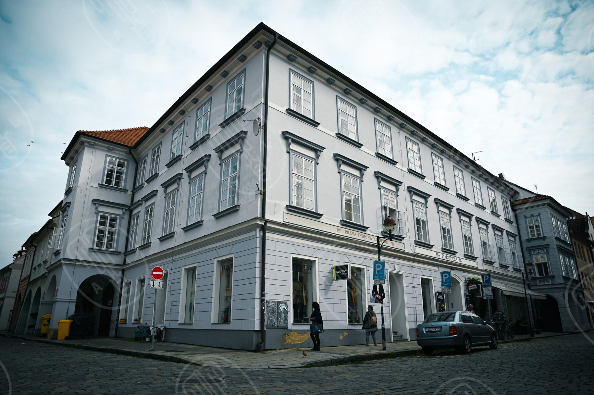 Původně jednopatrový dům s valbovou střechou na nároží Piaristické a České ulice sloužil 1837–1868 jako správní sídlo a úřadovna c.k. první privilegovaná železniční společnost, provozující koněspřežnou železnici, která si část objektu v Českých Budějovicích pronajímala. V objektu se nacházeli kanceláře, pokladna pro osobní dopravu a byty pro úředníky. Dům byl nejsevernější stanicí pro osobní přepravu koněspřežné železnice. Nástupiště se nacházelo u protějšího domu „U Černé růže“, nejméně 30 minut před odjezdem musel být cestující zapsán v tzv. zapisovací kanceláři, kde předložil platný pas a povolení k jízdě. Osobní vlaky jezdili dvakrát denně a cesta z Budějovic do Lince trvala 14 hodin.