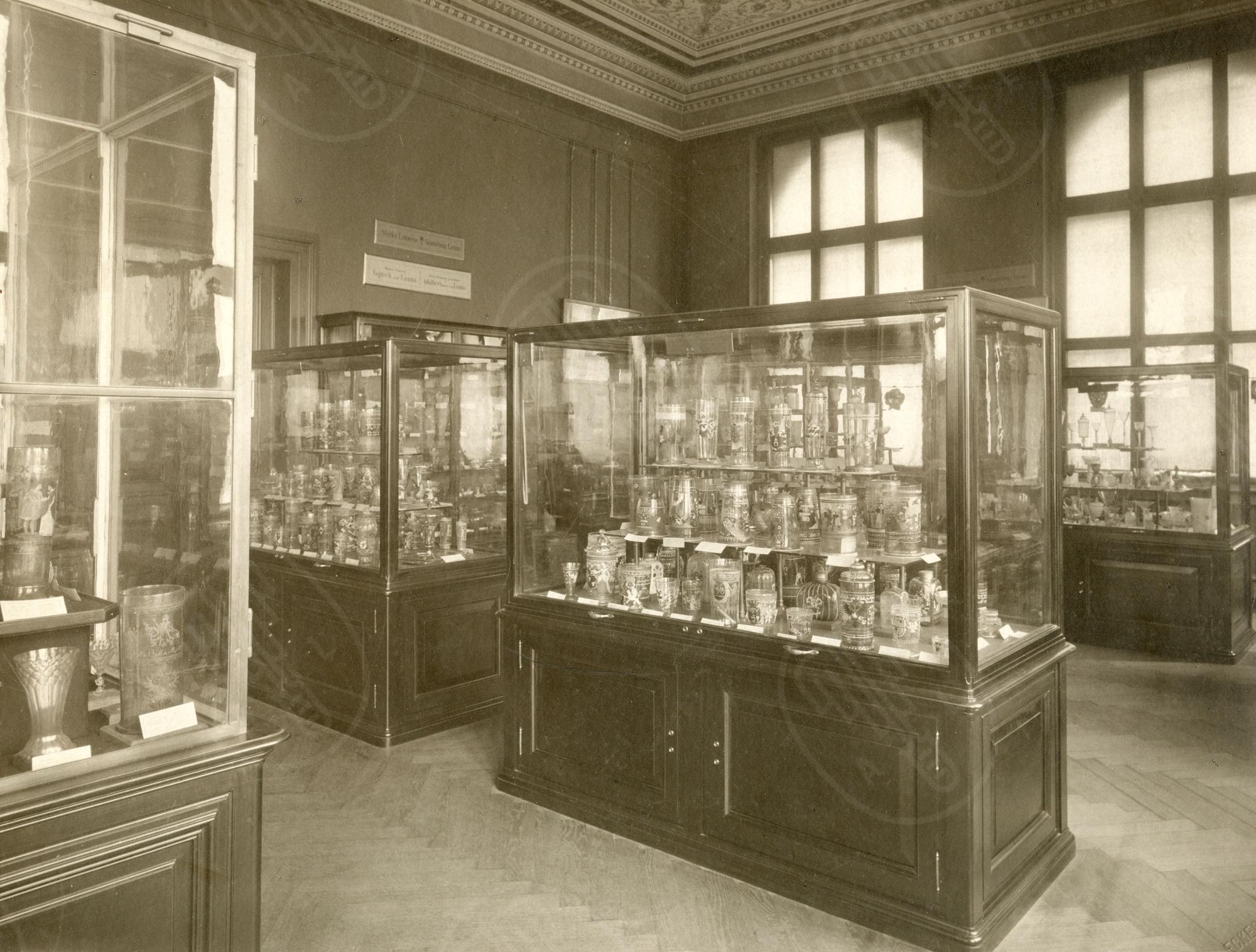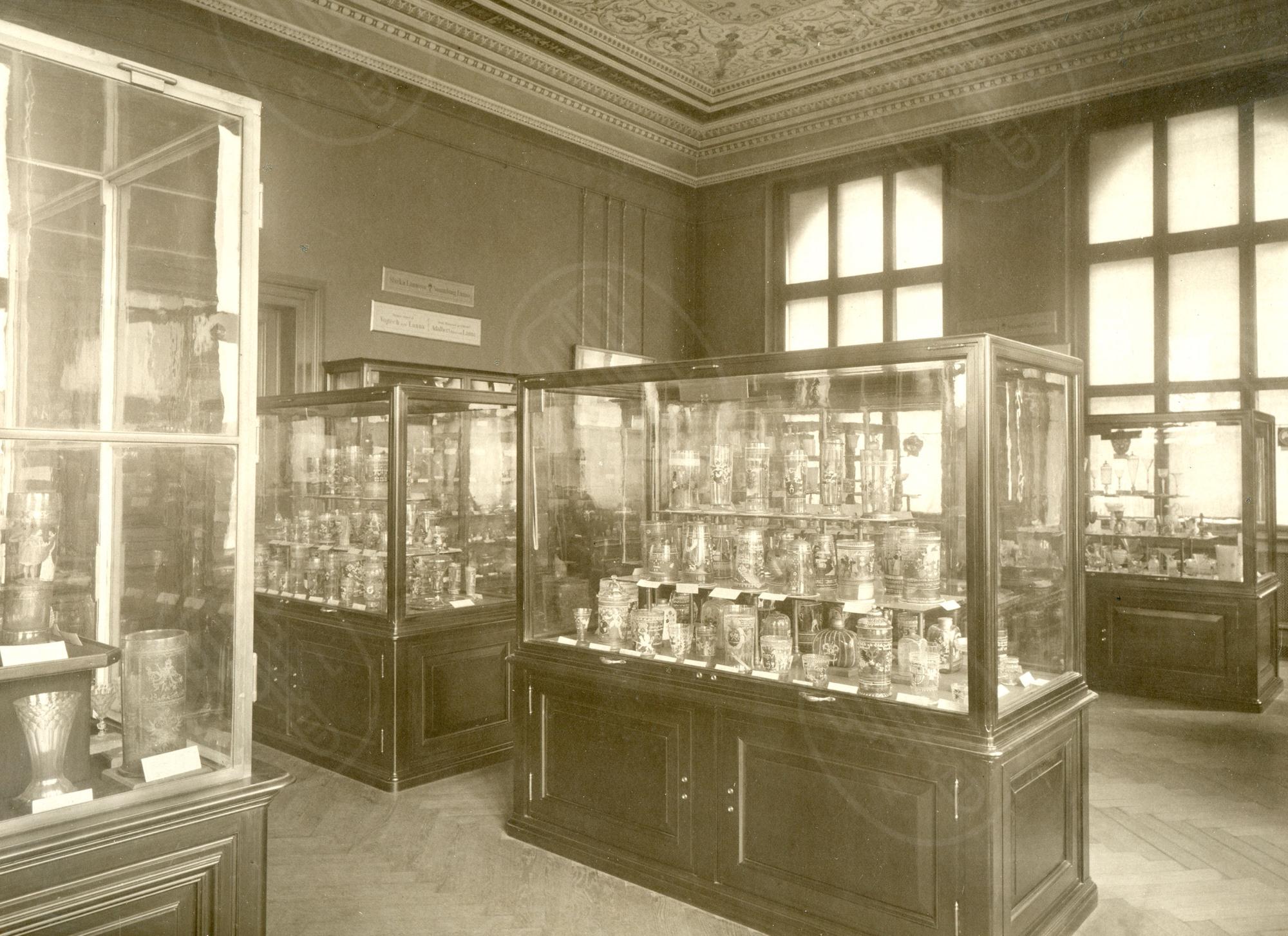 Česko-rakouský průmyslník a stavitel Adalbert Lanna ml. patřil k nejvýznamnějším sběratelům výtvarného umění a uměleckého řemesla v českých zemích od rudolfinské doby. V druhé polovině 19. století začal programově budovat rozsáhlé sbírky, které umísťoval v pražském Lannově paláci v Hybernské ulici. Jeho kolekce malby, kresby a grafiky představovala reprezentativní průřez evropským uměním od pozdního středověku po současnost, přičemž výjimečné postavení v ní zaujímala díla německých renesančních mistrů. Zvláštní a soustavnou pozornost věnoval Lanna uměleckému řemeslu, které v jeho době stále postrádalo odpovídající odborné ocenění. Tato část sbírky zahrnovala široké spektrum artefaktů od antického období až po 19. století, s důrazem na sklo, keramiku, medaile, plakety, mince a drobné plastiky. Zastoupeny byly však i další kategorie, například historický nábytek a textilie. Nejrozsáhlejší soubory tvořily kolekce keramiky a skla, každá obsahující několik tisíc předmětů.