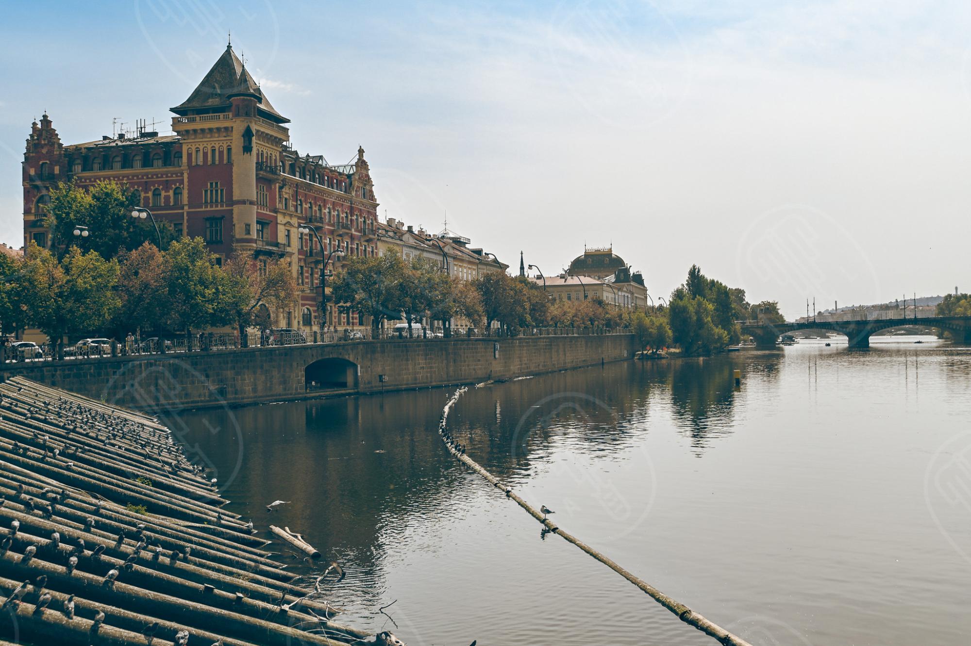 Než byly břehy Vltavy v Praze přeměněny do současné podoby nábřeží, utvářely se bez regulace jako přírodní říční území. Ještě na začátku 19. století byl pravý břeh Vltavy jižně od Karlova mostu volným písčitým prostranstvím, pozvolna se sklánějícím k řece, s rybářskými chalupami. Oblast sloužila k plavení koní, skladování dřeva nebo k bělení a praní prádla. Na rozhraní Starého a Nového Města v místě paláce Spořitelny České (nyní sídla Akademie věd ČR) byla v provozu cihelna s nákladním přístavem, zatímco na místě paláce Bellevue stávala mohutná staroměstská solnice.